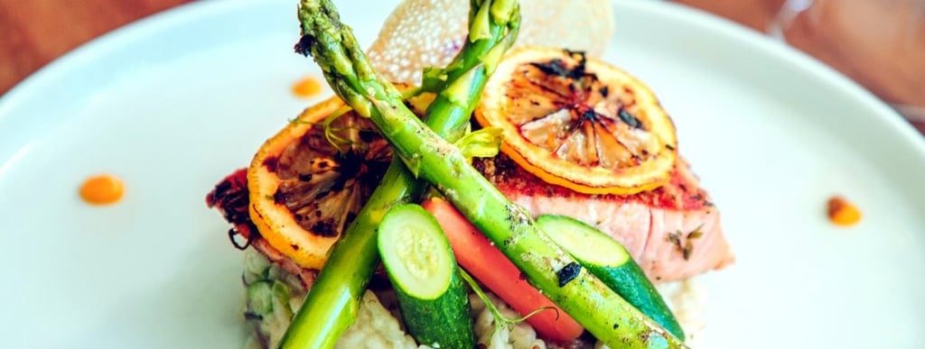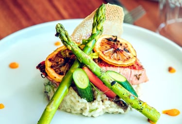 Salmon a la plancha sobre risotto